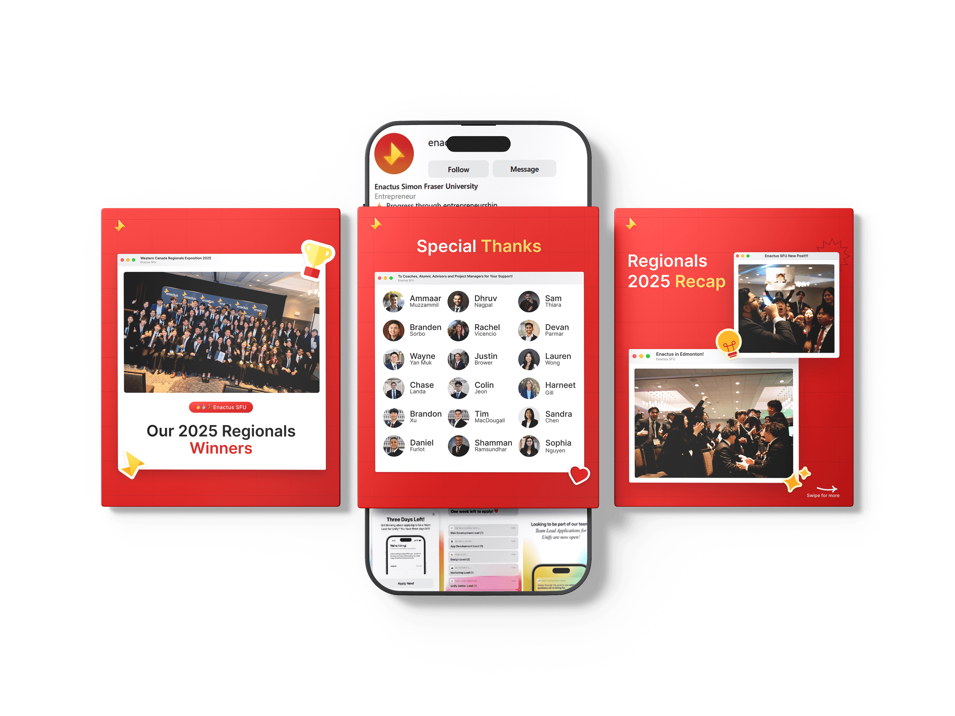 As the Co-Director of Design for Enactus SFU 2024-2025 year, I was responsible for revitalizing and overlooked Enactus SFU's Branding. This branding would be encompass all of Enactus design materials, from our social media to in person events. In addition, I was the lead designer for Enactus SFU Regional Competition Team in the Environmental Sustainability Category, presenting BeeKind Co's story.