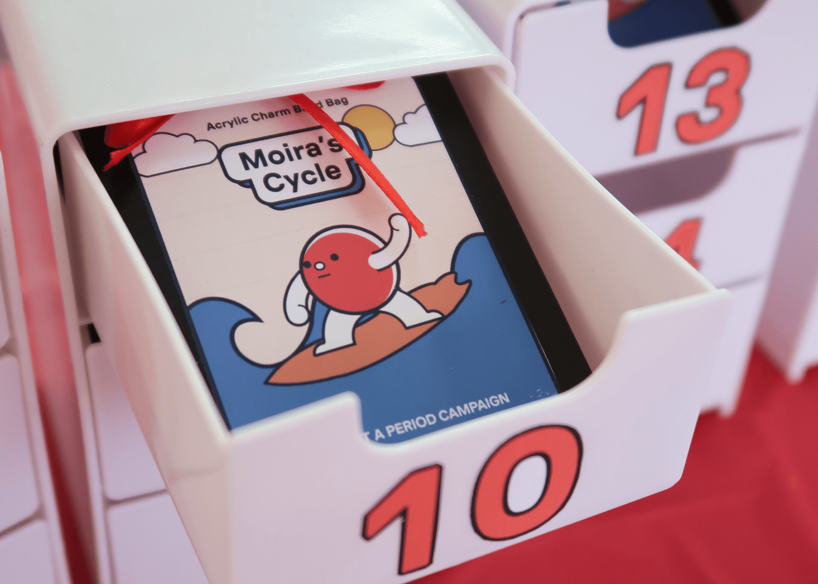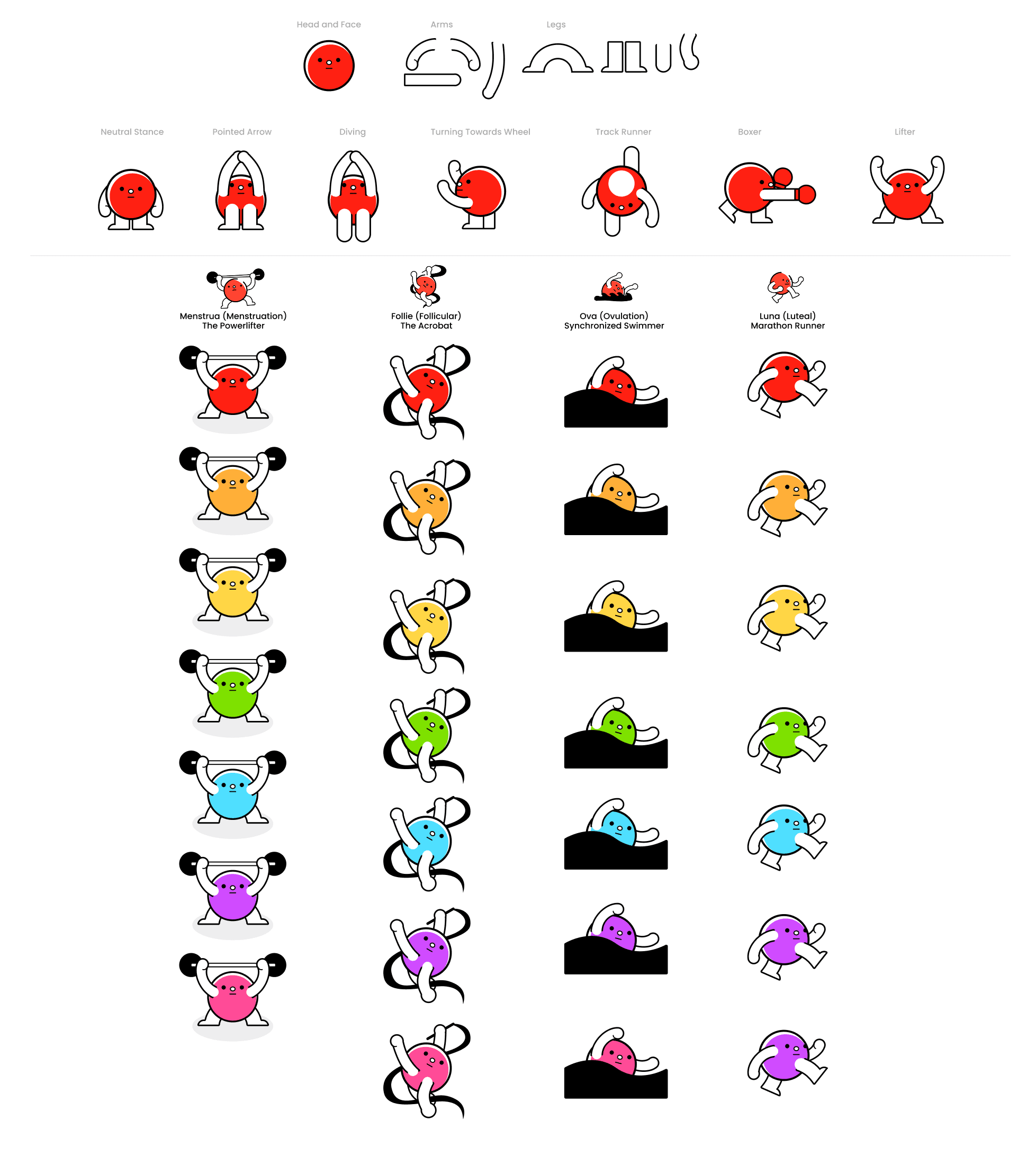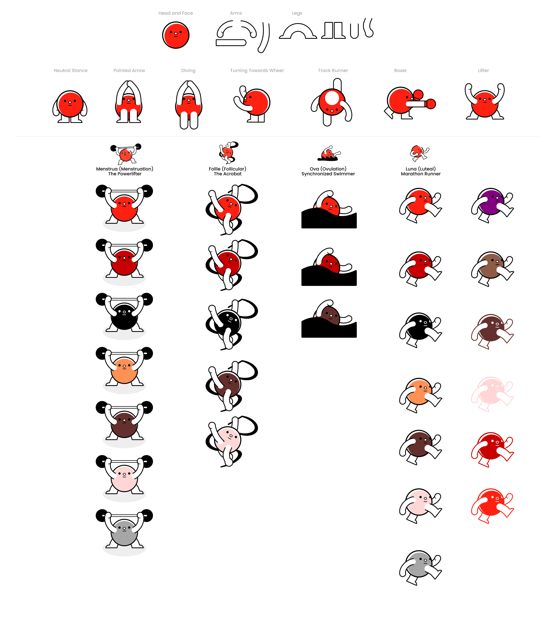 The main mascot colors were changed to be based on the menstrual cycle blood, and the posters were limited to 5 vibrant themed colors.