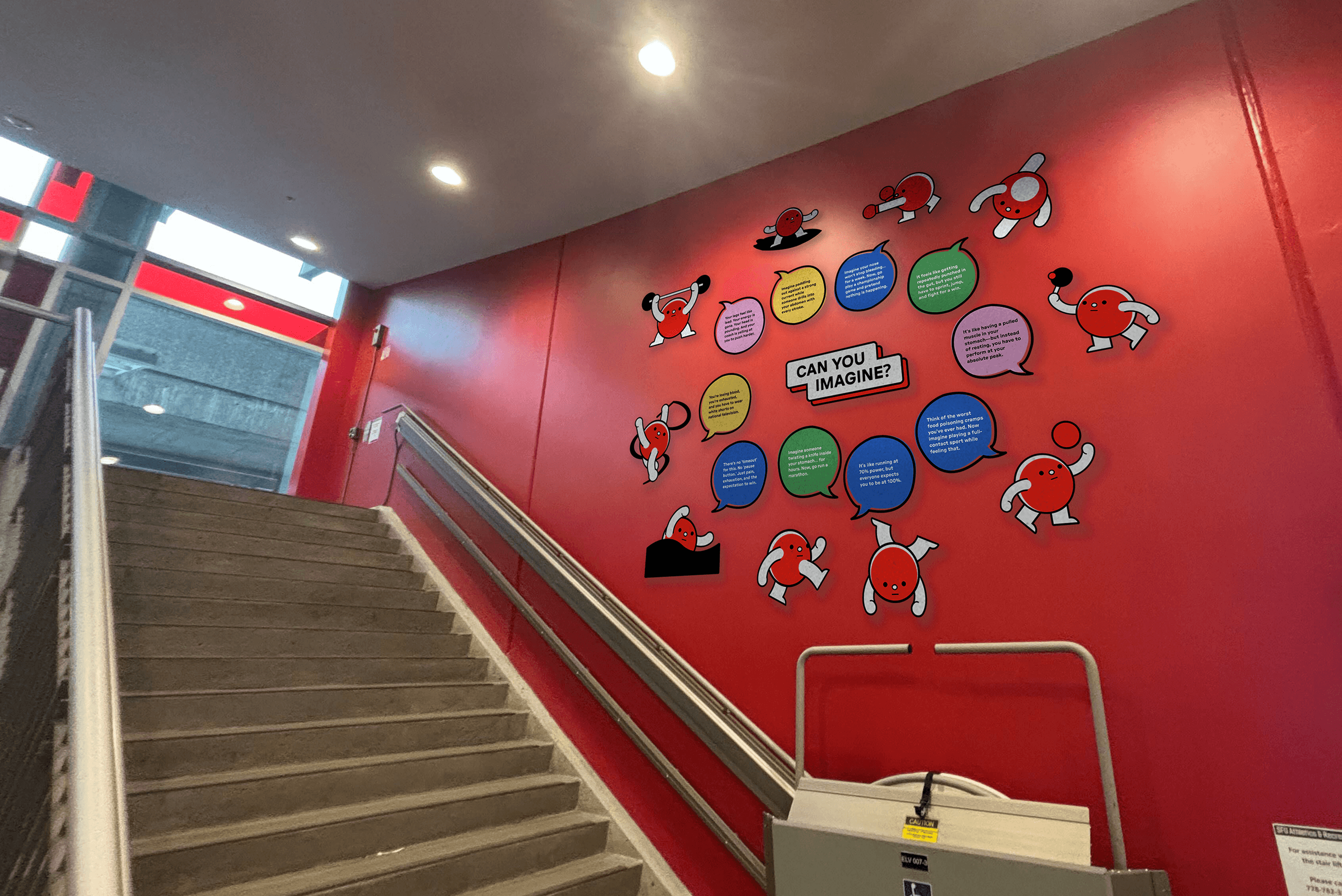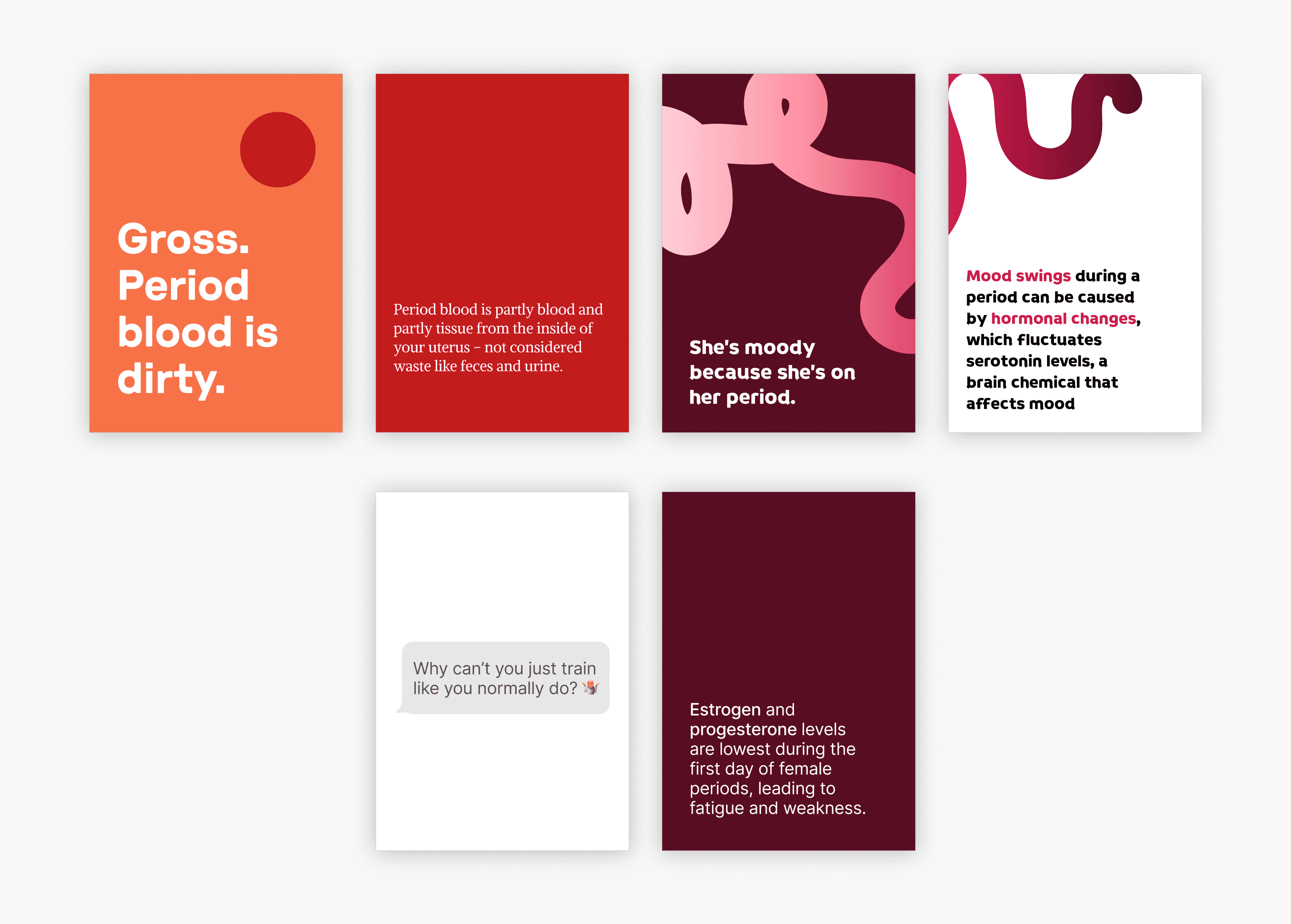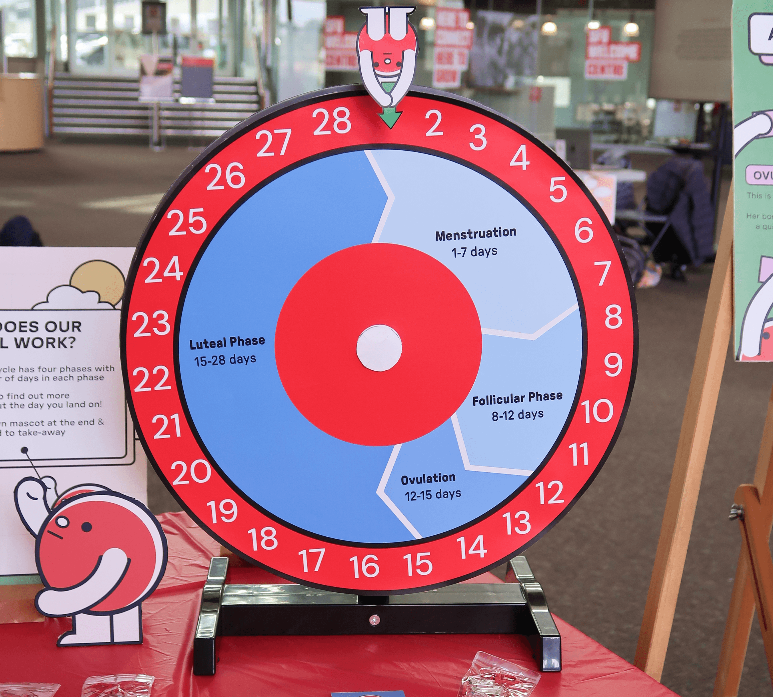 The Not Just A Period Campaign is a multi-component campaign which combines educational content in an interactive pop-up( graphic wall art and wheel activity) and poster series aimed at college aged students to raise awareness on the effects of menstruation on athletes.